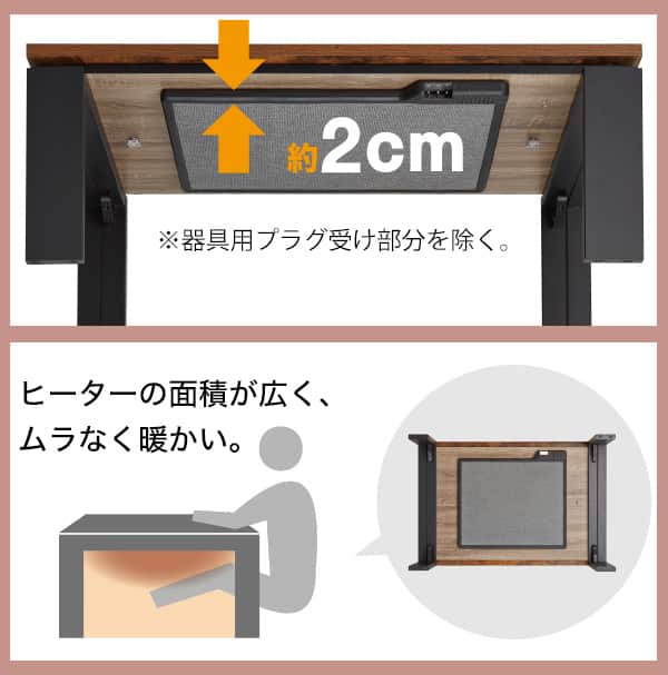 厚さ約2cmのスリムヒーター。