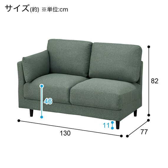 傷・汚れに強い片肘2人掛け布張りソファ(CS01 右肘 Nシールド布 H-DGR)
