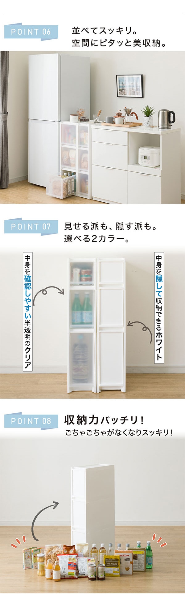【幅18cm 3段】スリムストッカー 引き出し均等分割タイプ(N01)WH