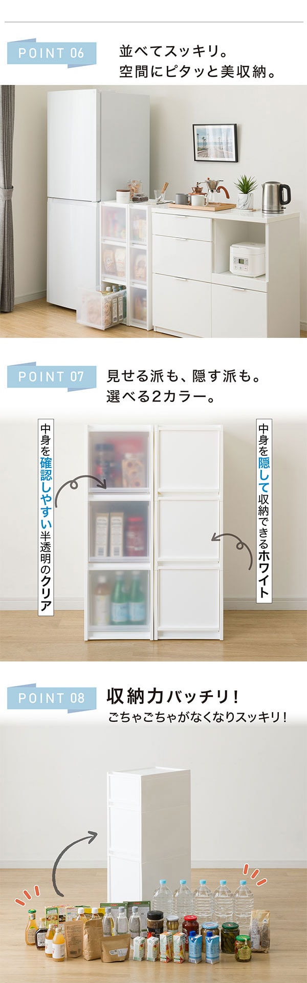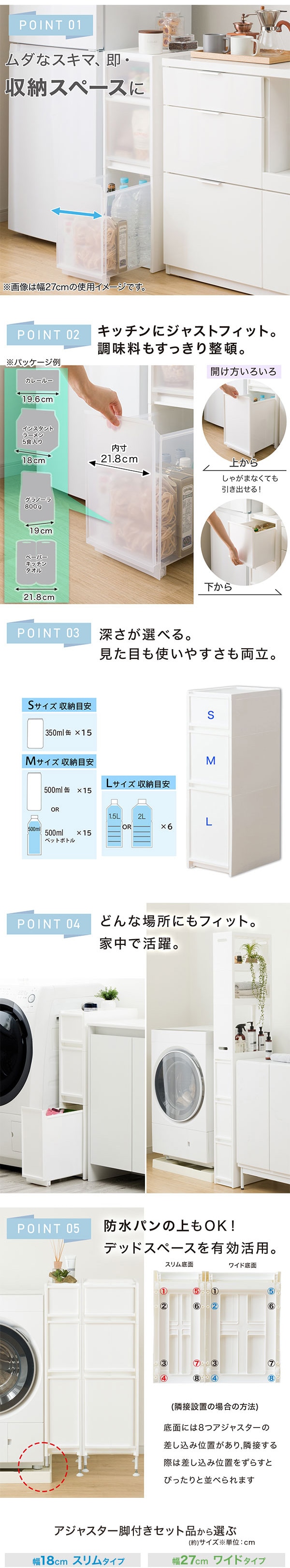 【幅27cm 3段】スリムストッカー 引き出しマルチ分割タイプ(N01)WH