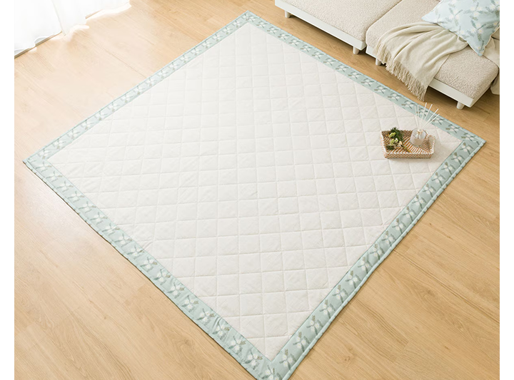 やわらかいキルトで足元からふんわりここちよい。かわいさと快適さを両立したラグでリラックス。