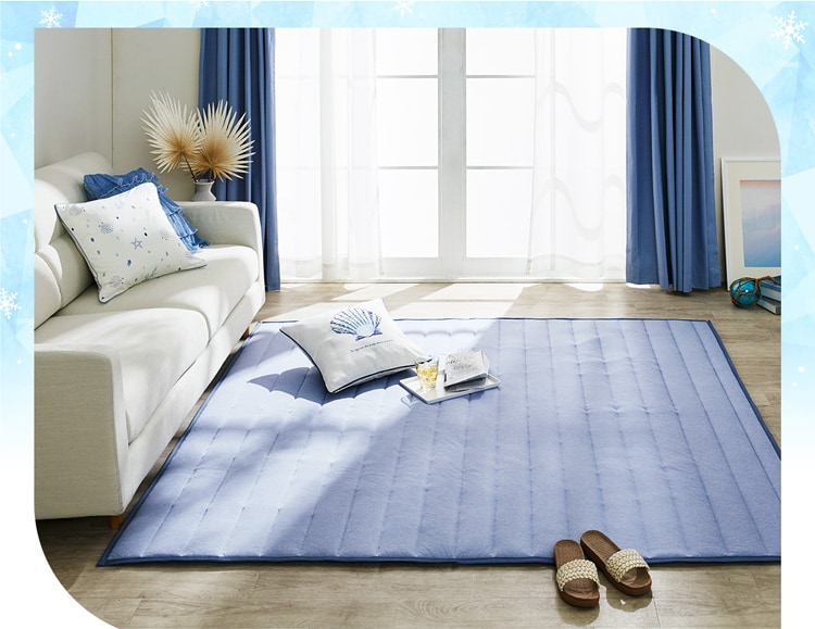 適度なクッション性と接触冷感生地ではだしでも心地よい。ジメジメ暑い日もサラッと快適に♪※画像は185×185cmを使用しています。