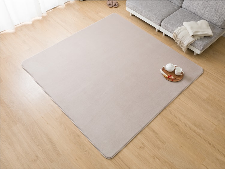 寒い時期にうれしい床暖使用可能。裏生地は滑り止め加工でズレにくい。※画像は185×185cmを使用しています。