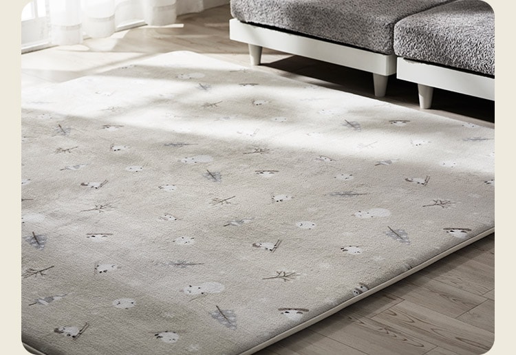 やわらかなタッチのかわいいシマエナガ柄。敷くだけでお部屋がほっこり癒しの空間に♡※画像は185×185cmを使用しています。