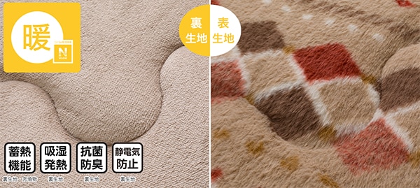 裏側はあたたかな空気を逃さない、吸湿発熱生地に蓄熱機能。