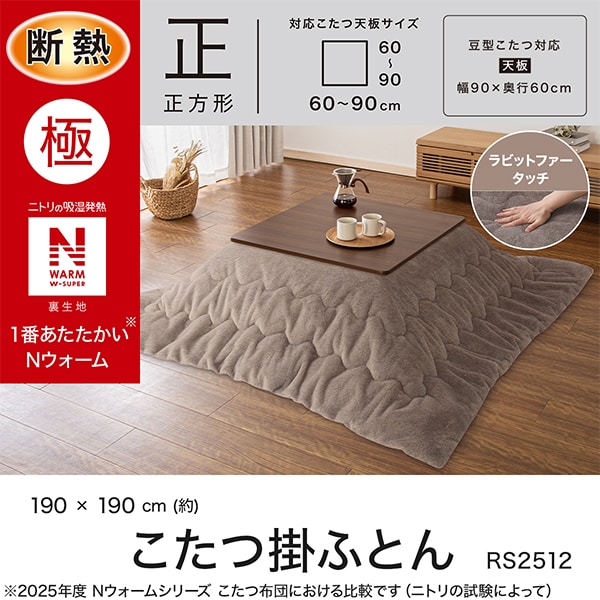 断熱こたつ掛ふとん 正方形(NウォームWSP ブラウン RS2512)