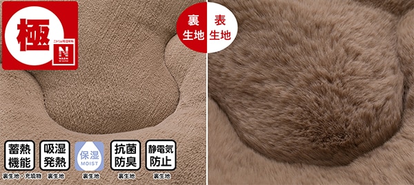 吸湿発熱生地に抗菌防臭、静電気防止機能つき。