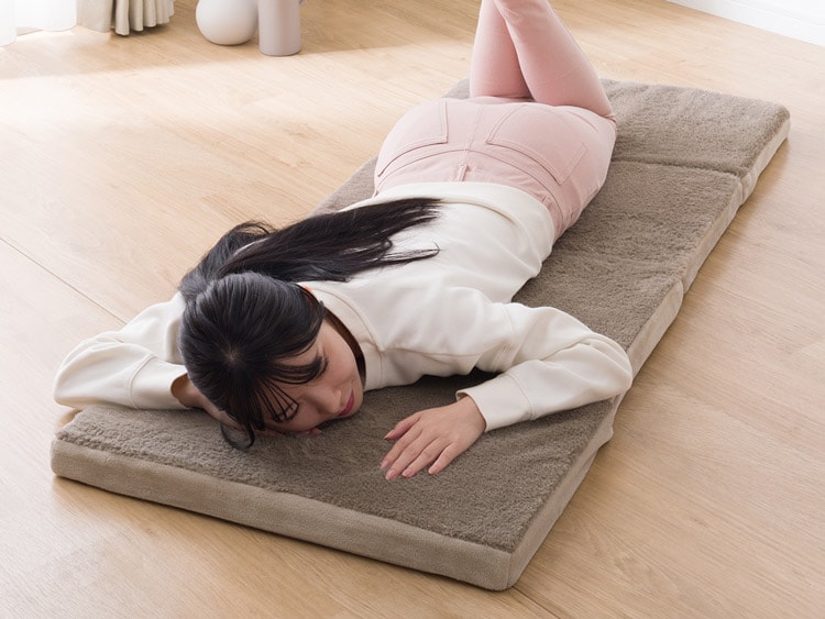 ●たたんでフロアクッション、壁に立てかけて座いす、ひろげてごろ寝など多用途で使える