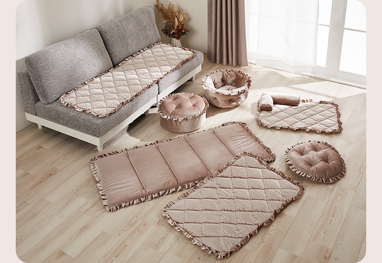パッと敷いてごろんとお昼寝。あたたかみのあるベロア素材でリラックス♪