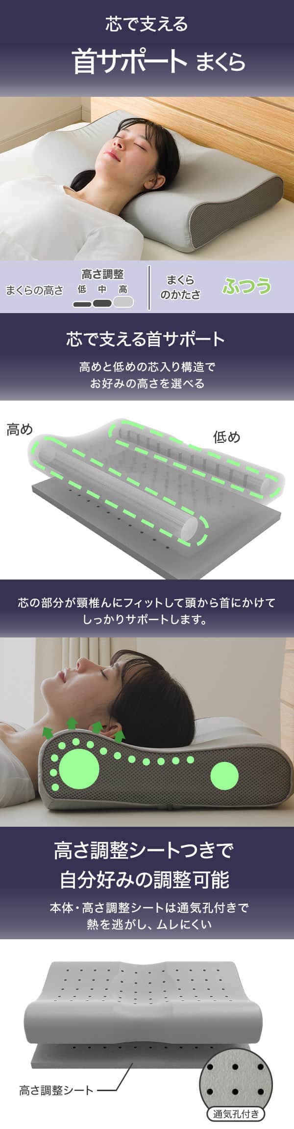 ●芯の部分が頸椎にフィットして頭から首にかけてしっかりサポート