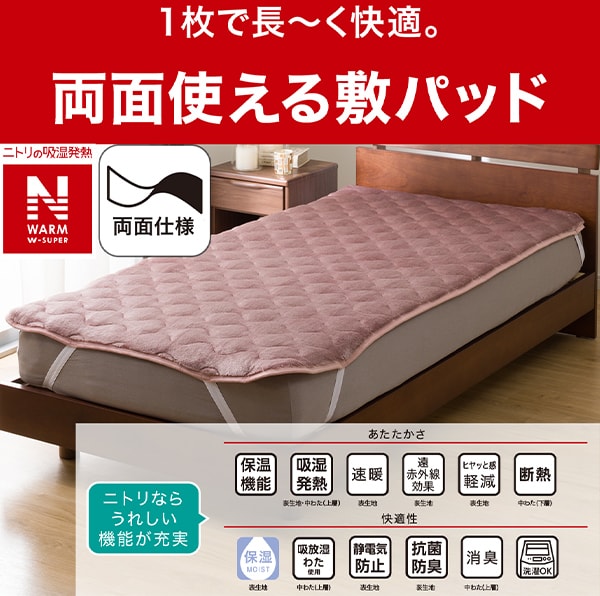 両面使える 敷きパッド シングル(NウォームWSP グレイッシュローズ A2512)