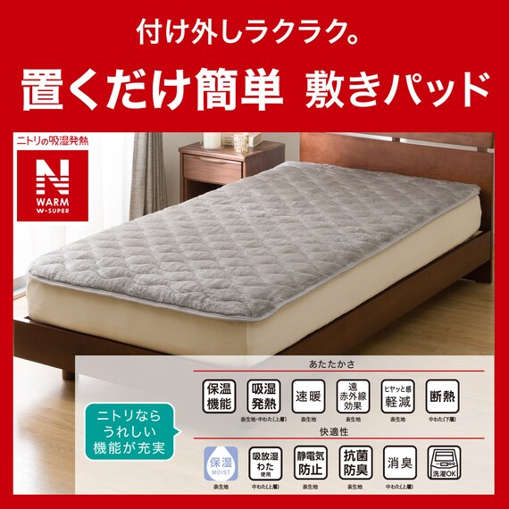 置くだけ簡単 敷きパッド セミダブル(NウォームWSP グレー A2512)