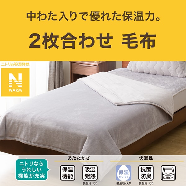 2枚合わせ毛布 ダブル(Nウォーム グレー A2510)