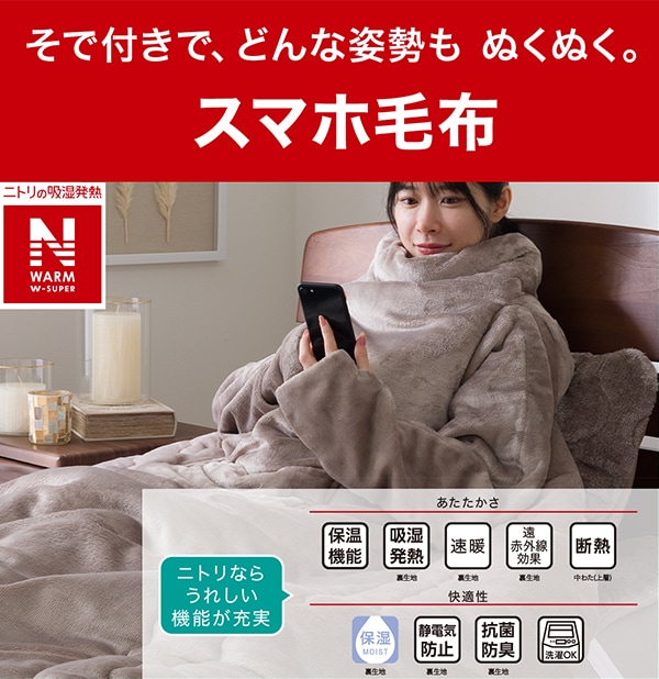 2枚合わせ袖付きスマホ毛布 シングル(NウォームWSP モカ A2514)