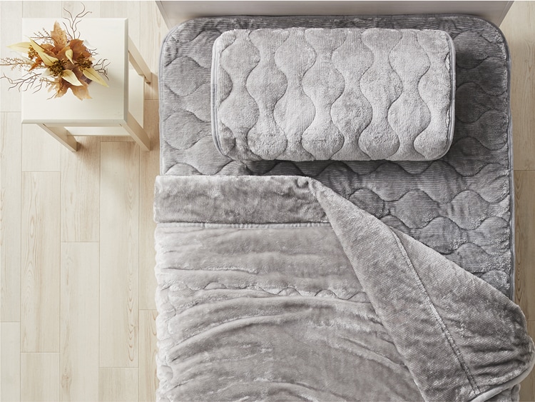 吸湿発熱面と、さらふわパイル面の両面仕様。季節の変化にあわせてなが~く快適♪
