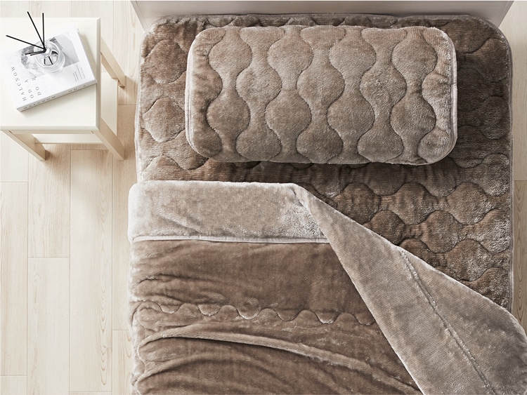 吸湿発熱面と、さらふわパイル面の両面仕様。季節の変化にあわせてなが~く快適♪