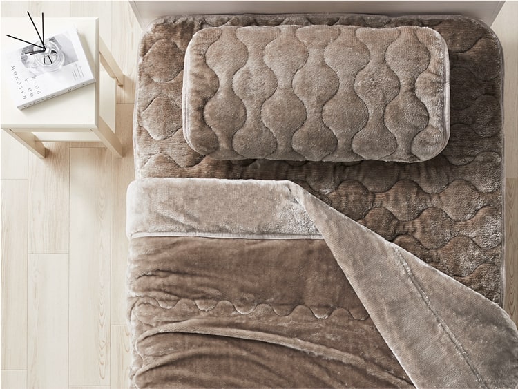 2枚合わせ毛布でふとんの熱を逃しにくく、襟元もボリュームがありさらにぬくぬくあったか♪