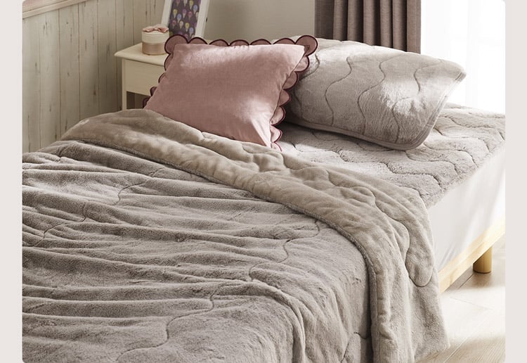 ふわふわのファー面と、通気性がよくさらっとしたワッフル面の両面仕様。季節にあわせて長~く使える♪