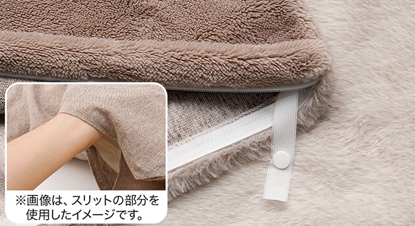 スリット付きで穴の中に手を入れて中のふとんを直すことができます。