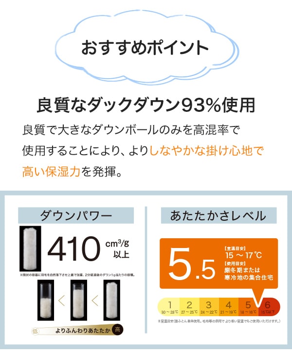 ダウンボール大で保温性アップ。よりしなやかで上質な羽毛ふとん。