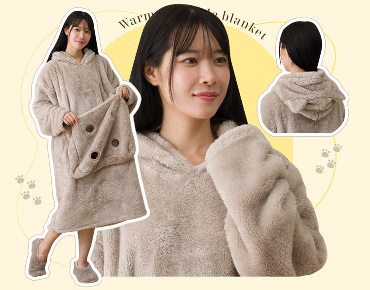 定番のあたたかさ!ネコが入れられる着る毛布。
