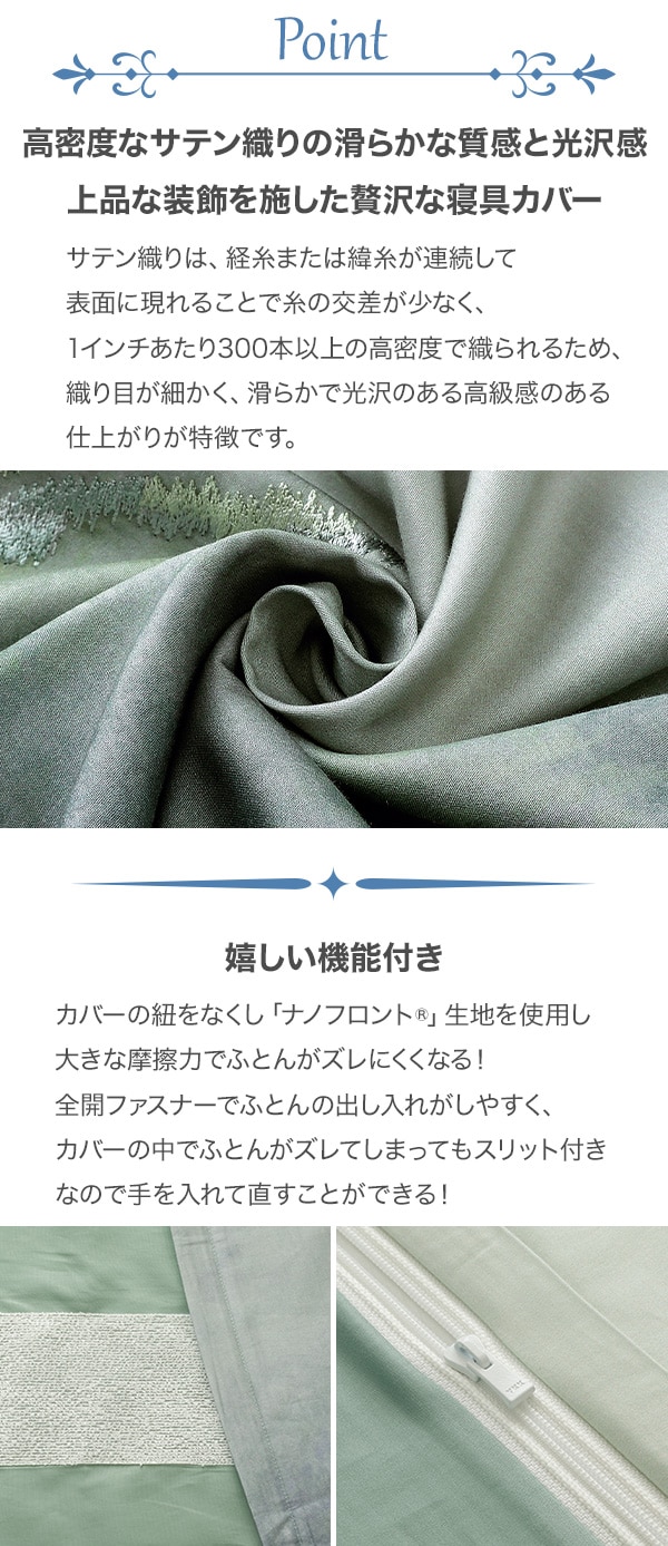 高密度サテン 掛ふとんカバー シングル(Nグリップ PR02ステッチ グリーン S)