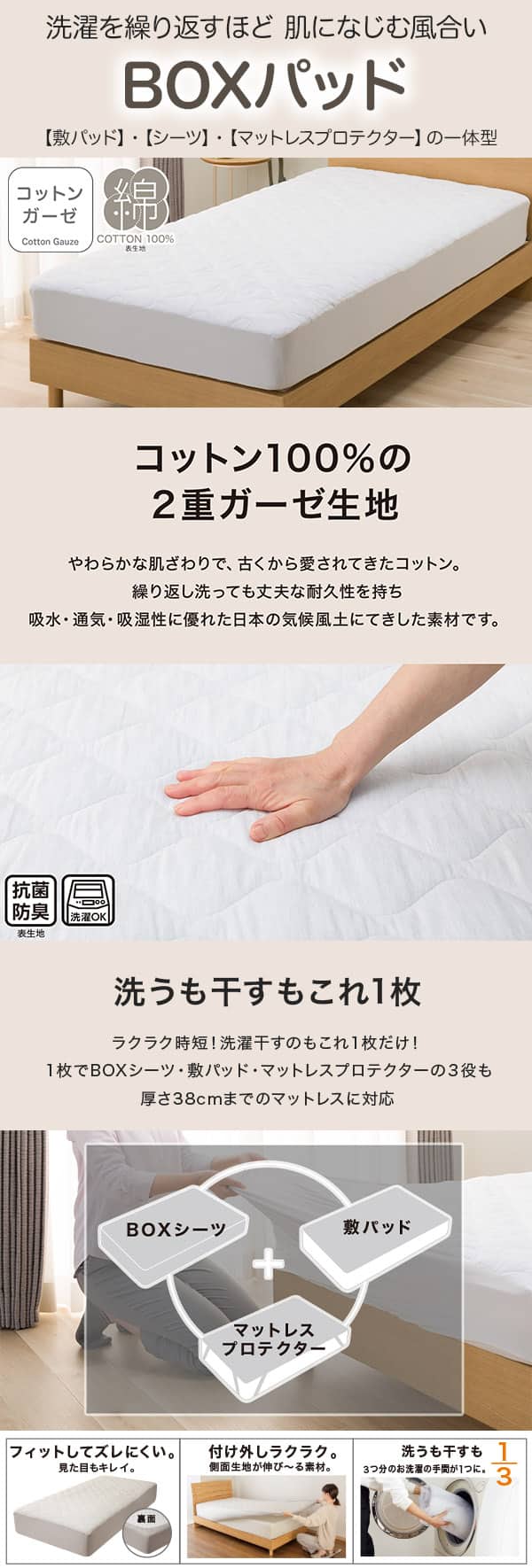 シーツ・敷パッド・マットレスプロテクターの一体型