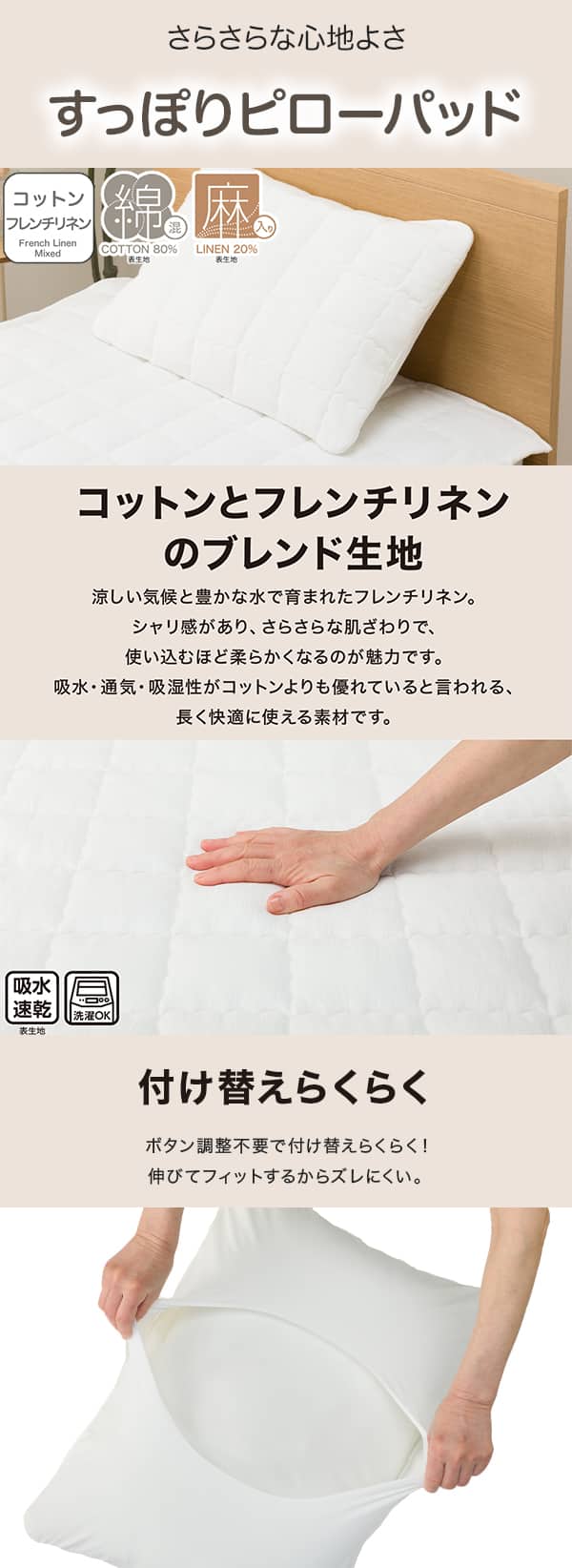 すっぽりピローパッド(コットンフレンチリネン ホワイト 2619)