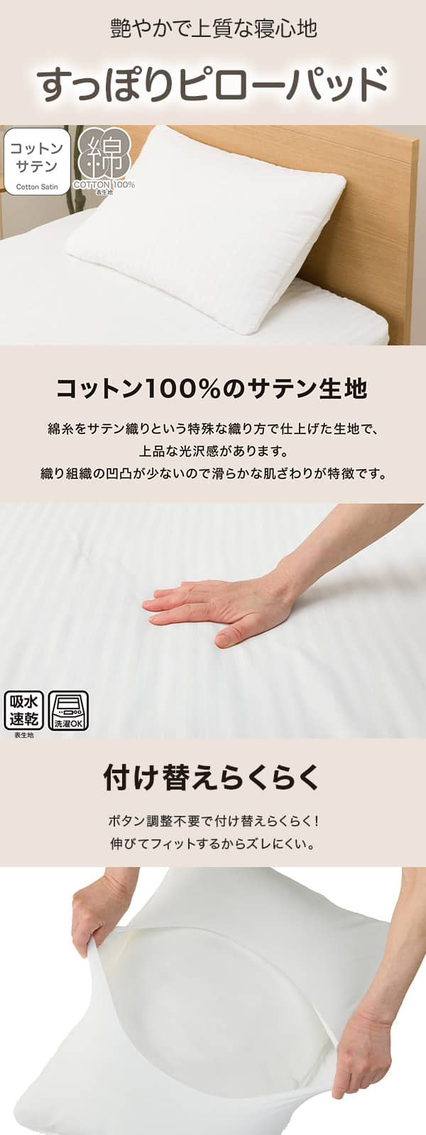 すっぽりピローパッド(コットンサテン ホワイト S2622)