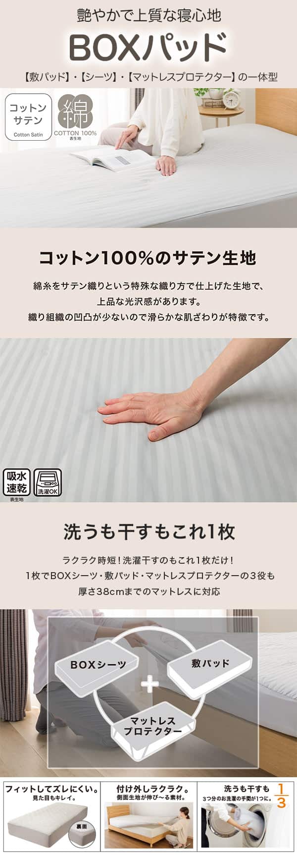 BOXパッド シングル(コットンサテン S グレー S2622)