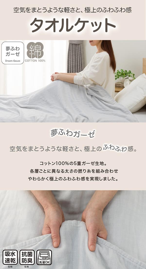 タオルケット ダブル(夢ふわガーゼ D グレー S2648)