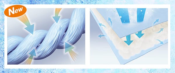 接触冷感がさらに冷たくなり、除湿わたが湿気を吸放湿してムレにくい。