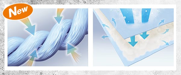 接触冷感がさらに冷たくなり、除湿わたが湿気を吸放湿してムレにくい。
