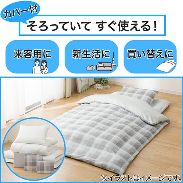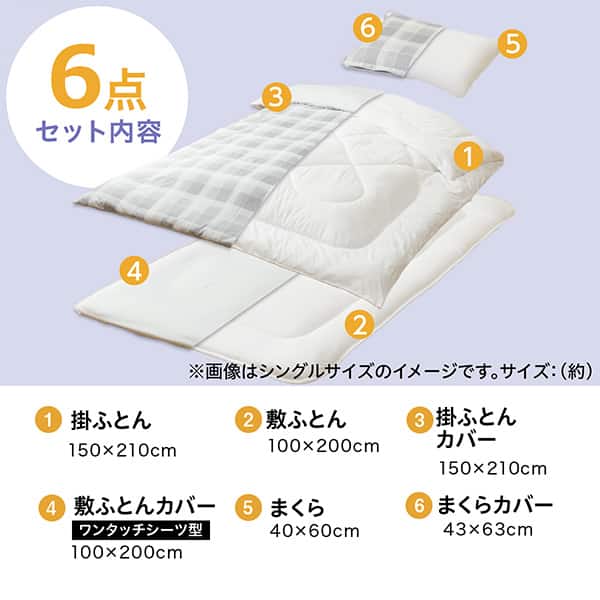 カバー付き 布団セット 6点 (S2601 シングル グレーチェック)
