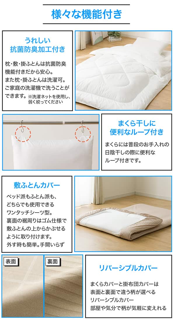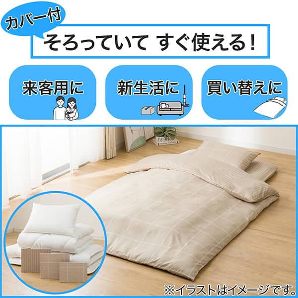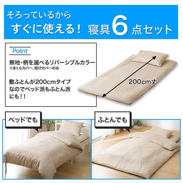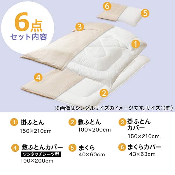 カバー付き 布団セット 6点 (S2607 シングル ベージュウィンドウペン)