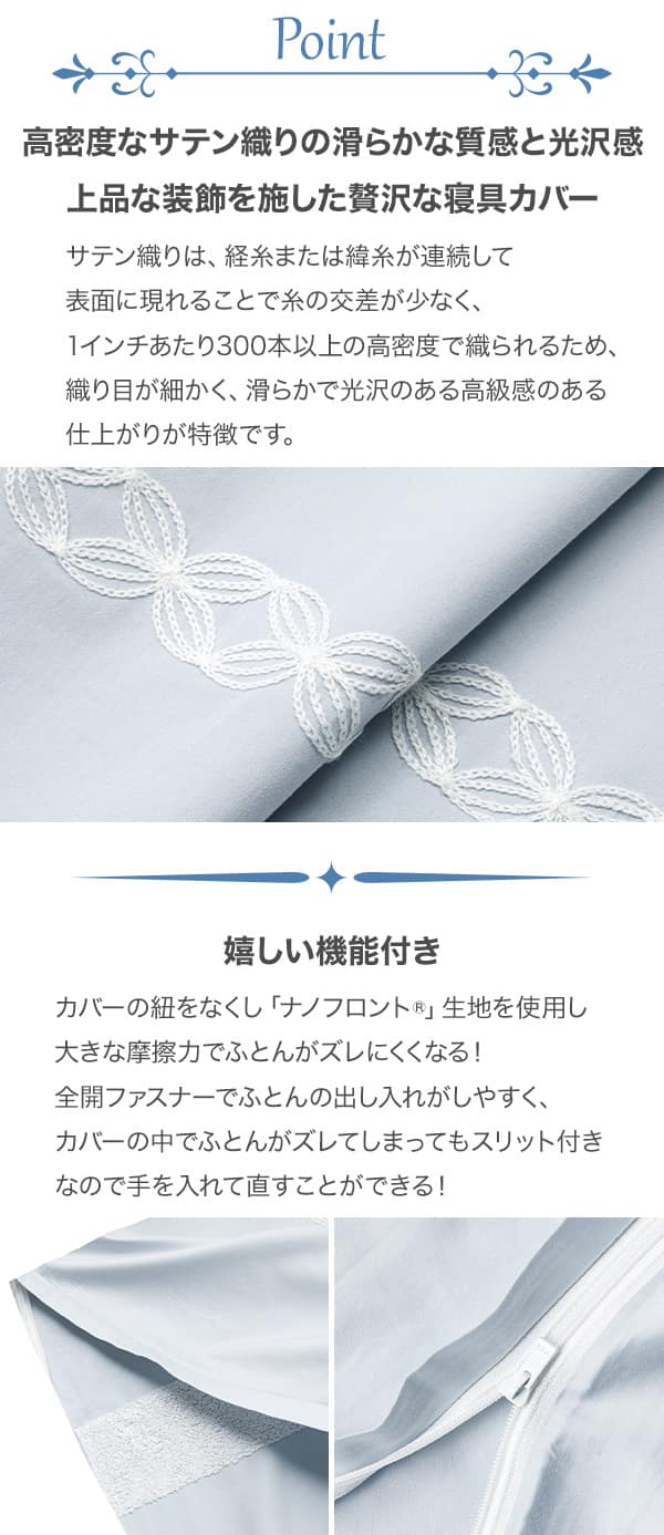 高密度サテン 掛ふとんカバー シングル(Nグリップ PR10WHラインステッチ ブルー S)