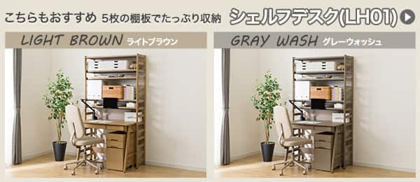 下段が開放型のシェルフは、デスクとのレイアウトを自由にアレンジできる設計。デスクをシェルフに収納したり、L型に配置したり、収納スペースとしても活用できます。