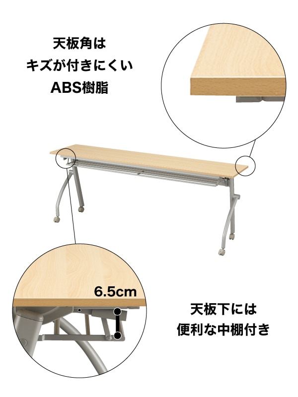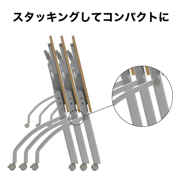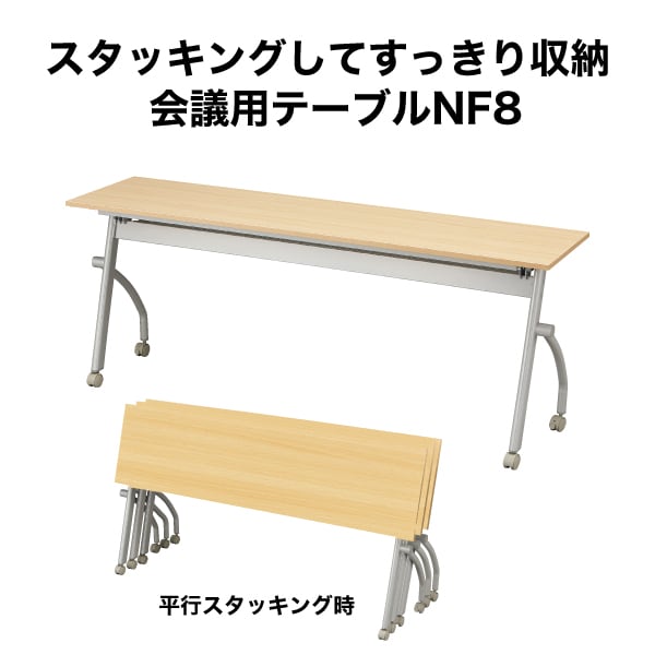 テーブルを使わない時は、スタッキングしてコンパクトに収納できる会議用テーブル。