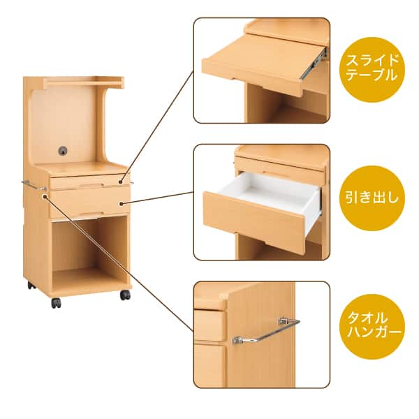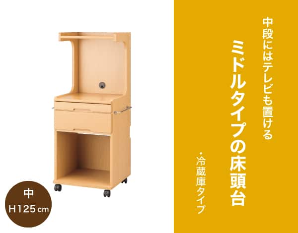 ●ミニ冷蔵庫が入るミドルタイプの床頭台。