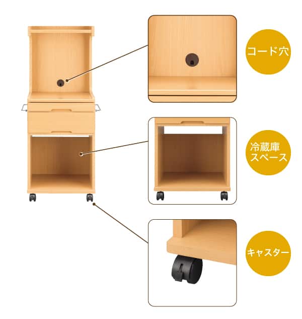 床頭台(IM-001M ミニ冷蔵庫収納 NA)