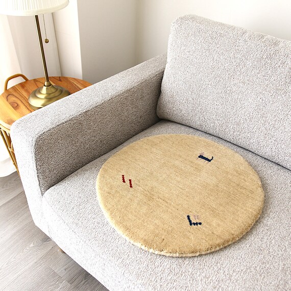 ギャッベ柄の羊毛チェアパッド 円形(ベージュ)