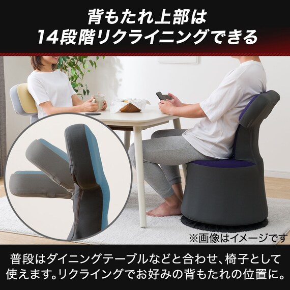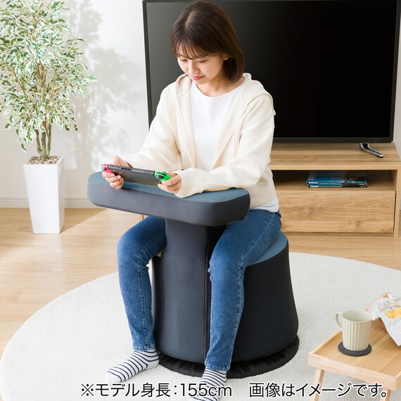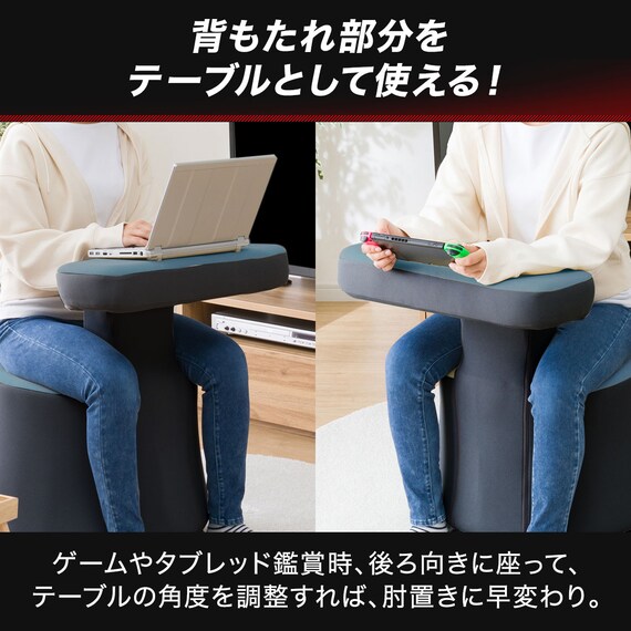 ●普段はダイニングテーブルなどと合わせ、椅子として使うのはもちろん、ゲームやタブレッド鑑賞時、後ろ向きに座って、テーブルの角度を調整すれば、肘置きに早変わり。