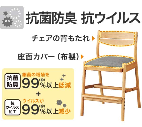 手が触れる部分に 抗菌防臭・抗ウイルス加工を施しています。