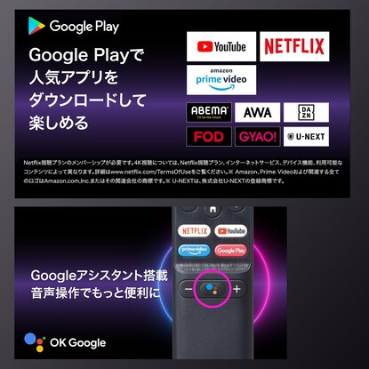 プリインストールアプリ:Netflix、YouTube、PrimeVideo、GooglePlay、メディアプレーヤー、etc.