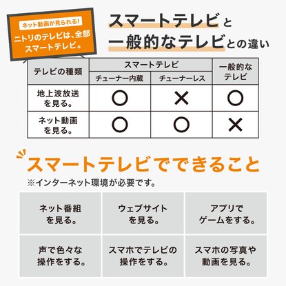 ※地上波、BS/100°CSをご覧になるときは別途外付けのチューナーが必要です。
